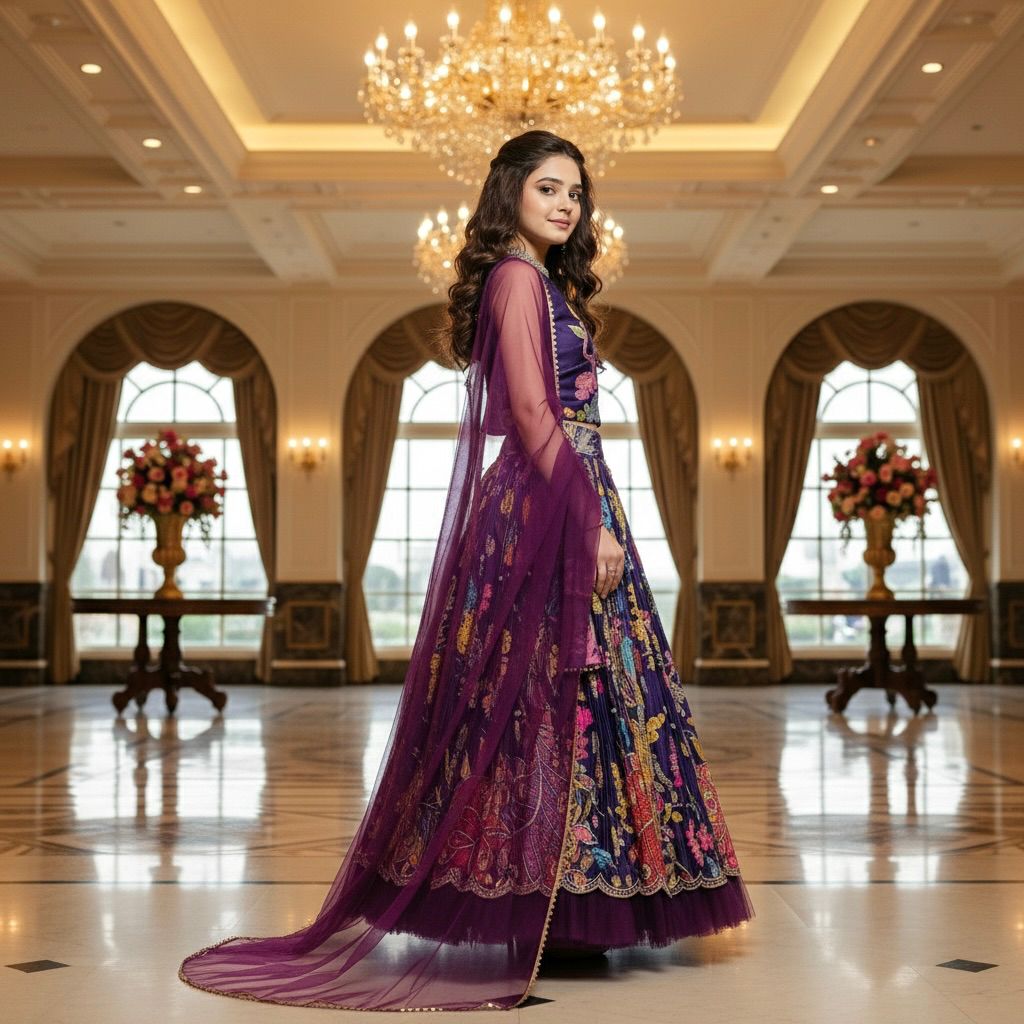 🔳 FABRIC:-Pure Heavy Natural Crep With Position Print Embroidery Work With Real Mirror Hand Work