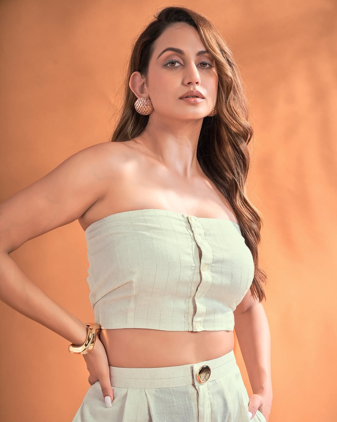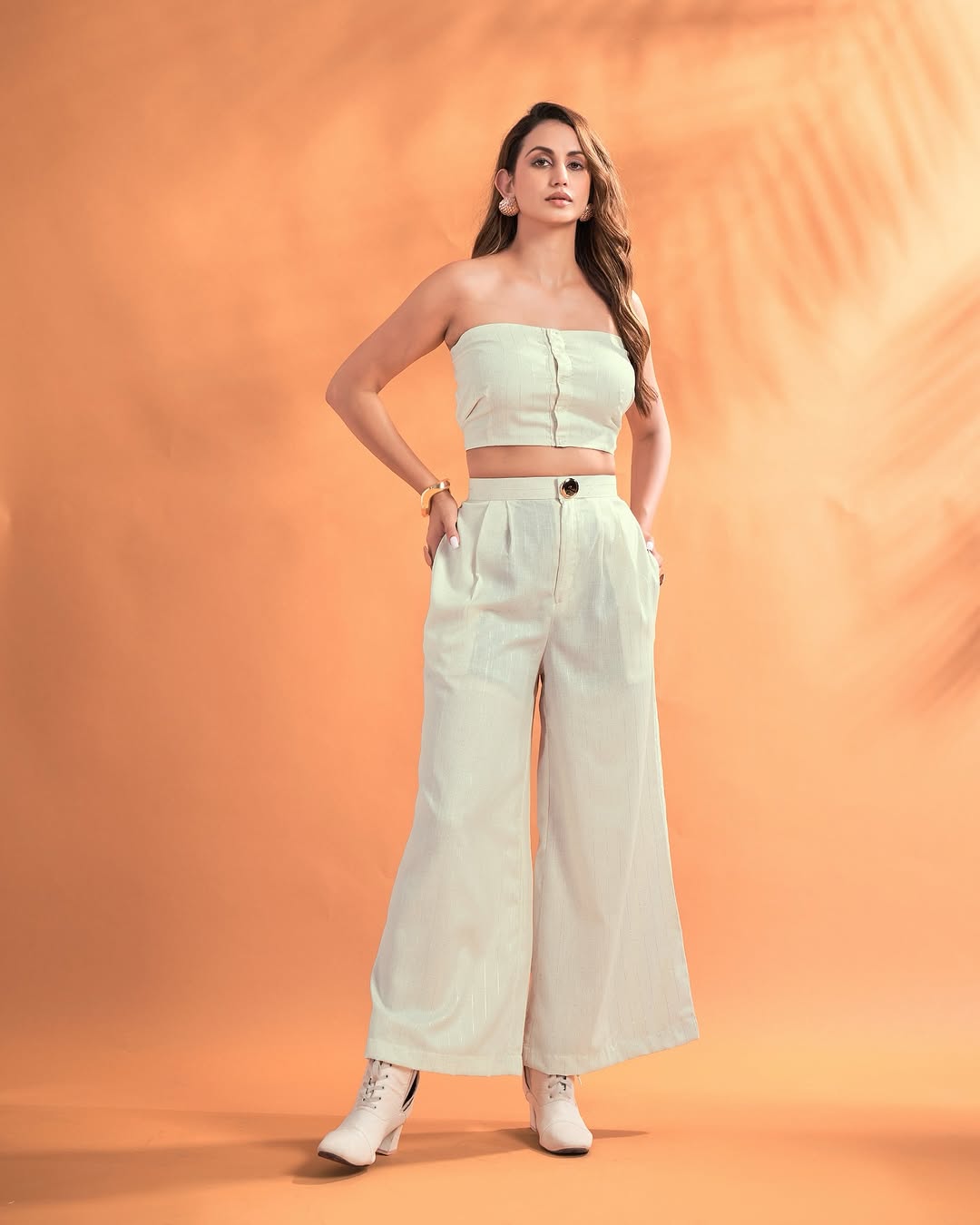 Women’s Solid Strapless Co-Ord Set – Tube Top & Wide-Leg Pants